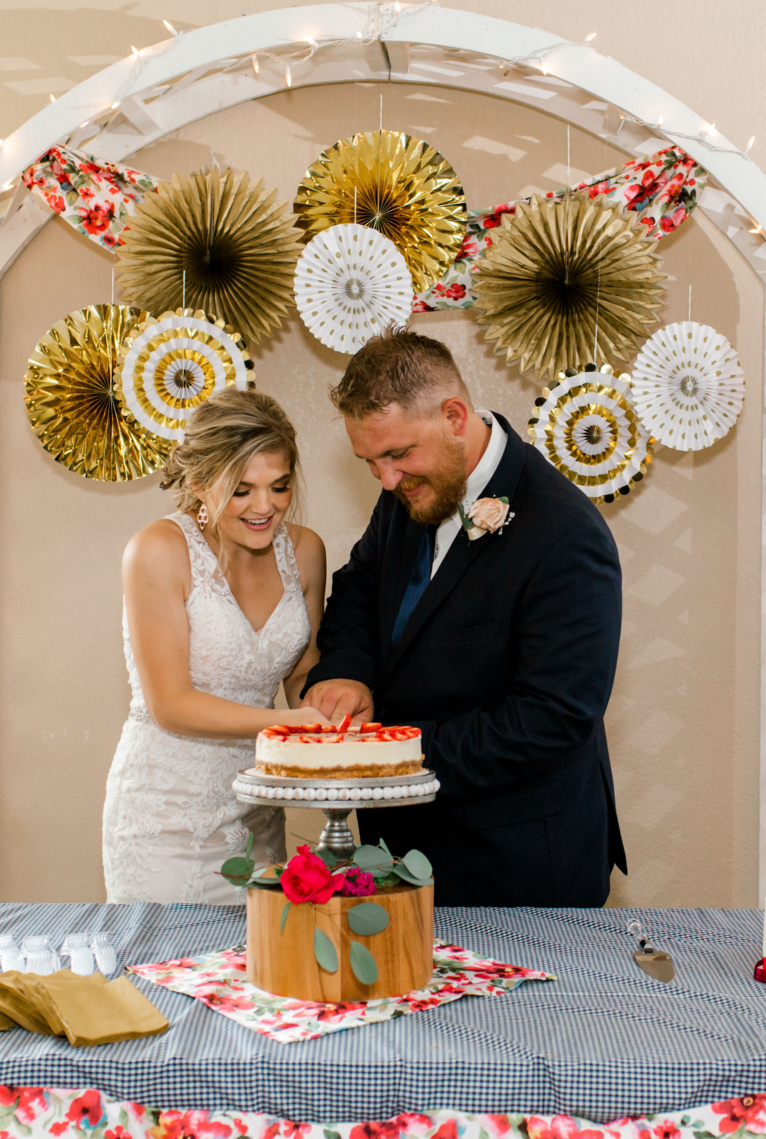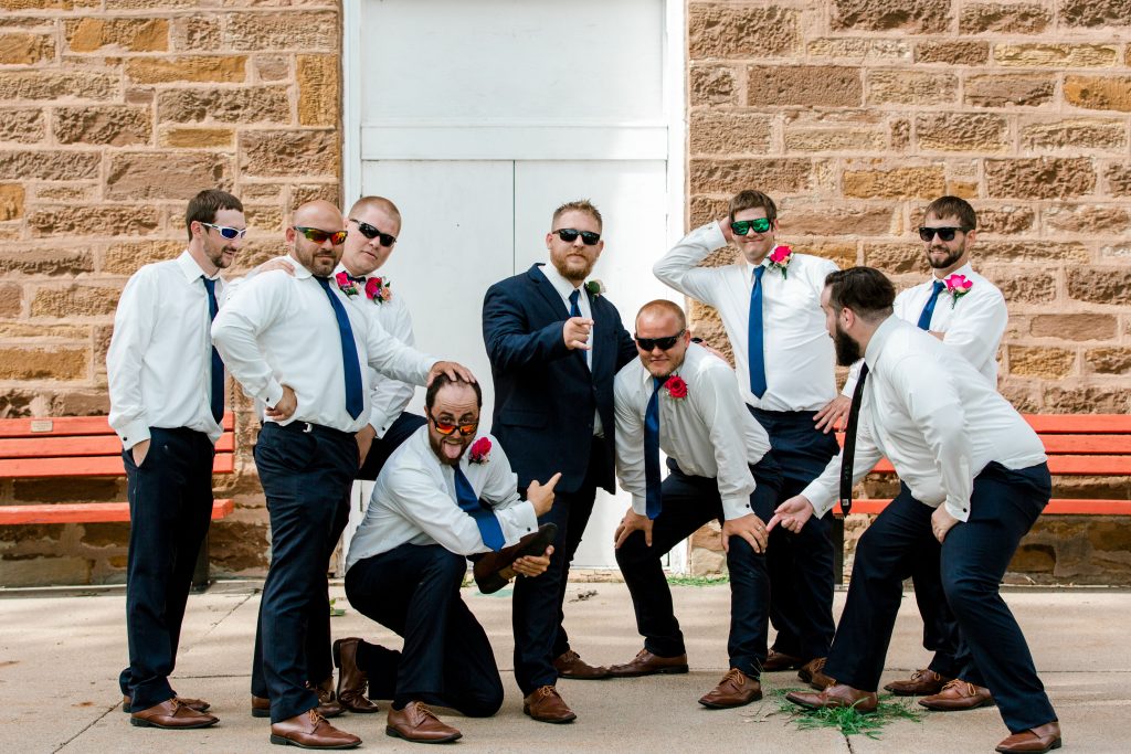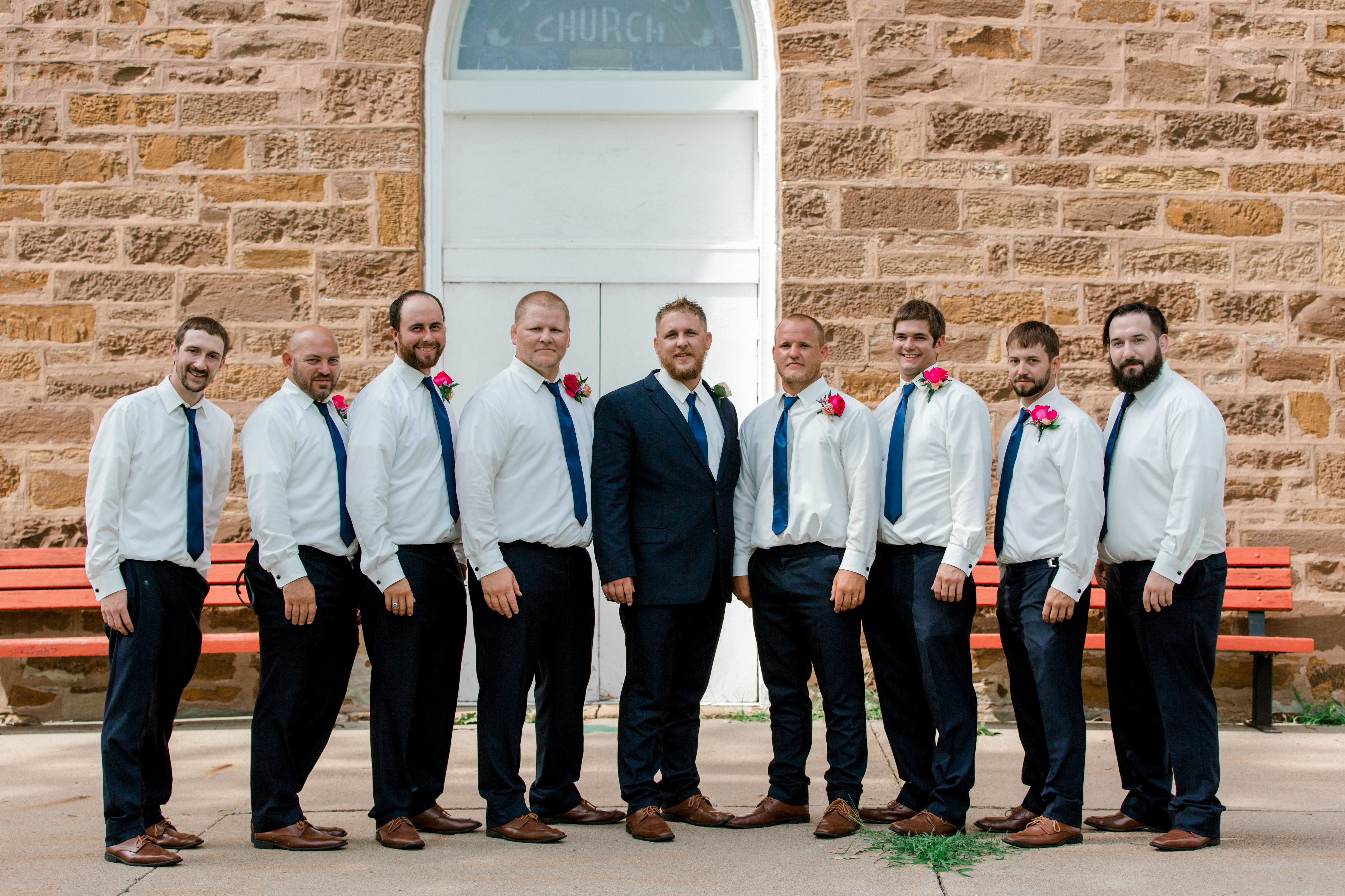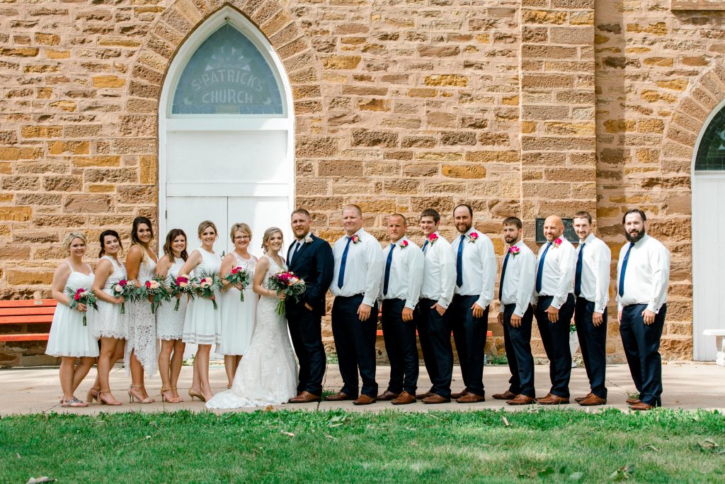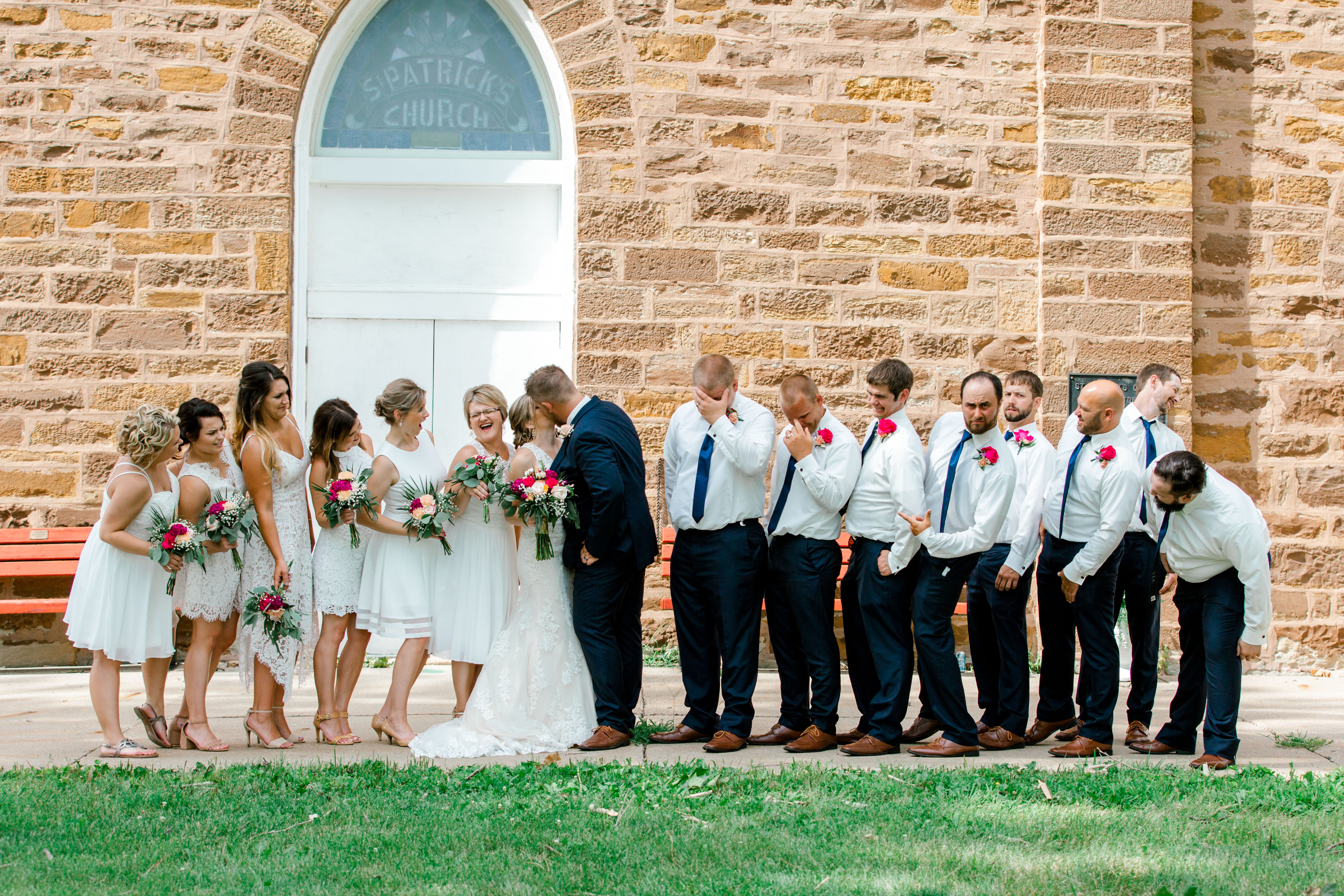 It was time for some fun! Thereafter, the wedding party headed to Georgetown Hall where the reception was held. Prior to entering the reception, we grabbed a few moments to get some outside wedding party photos. Everyone was so gracious and we were able to get some great photos despite the heat. Entering with their own style, the wedding party preceded the bride and groom into the reception, who walked in holding their clasped hands held high. Their joy was absolutely contagious. Cake cutting lead into a wonderful buffet of delicious food prepared by Thelma Saxton. A few tearful speeches, a couple funny speeches, an emotional first dance by the couple, and before I knew it, it was time for all the guests to boogey!