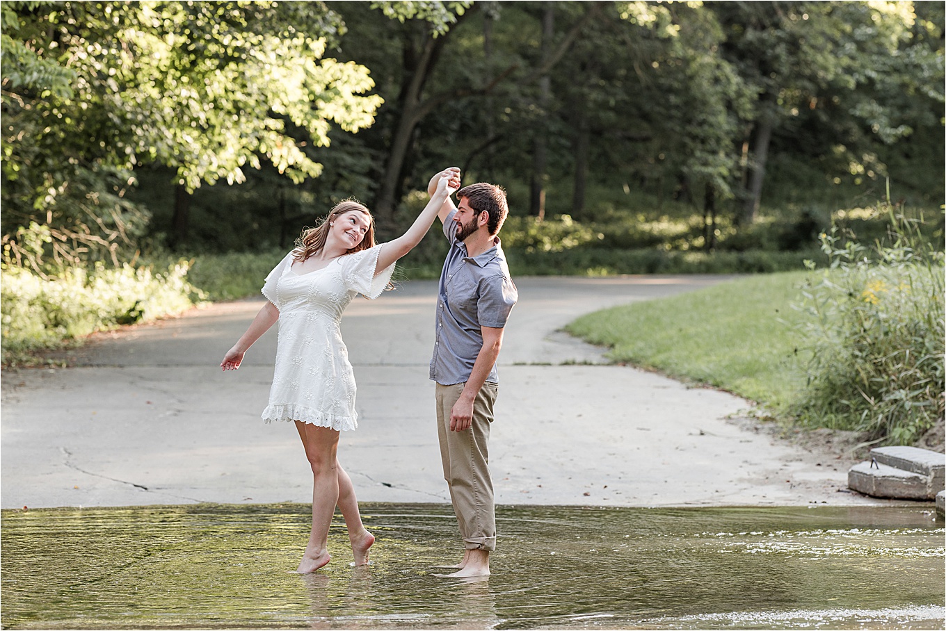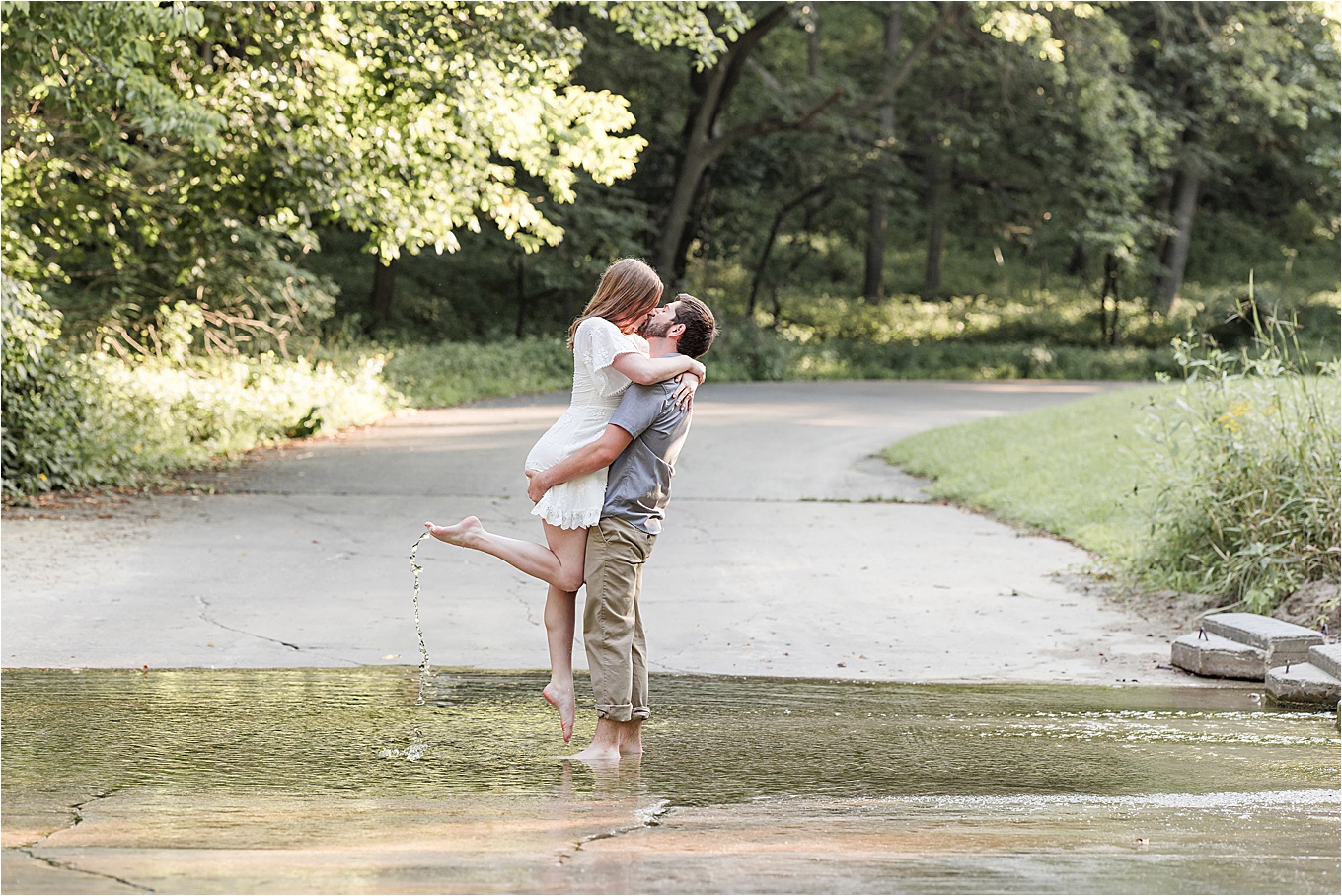 “The proposal took place at Big Creek Park in Ankeny! My coworker has an interest in photography and wanted to take a couple of pictures for us! I totally knew he was proposing because well…he’s a horrid liar! He kept dropping subtle hints like “wow, such a nice day out, a proposal would be a nice touch to the day.” My coworker asked if there were any last poses or shots we wanted and I turned to him and he had plopped to one knee and said the sweetest things! I of course said yes!”