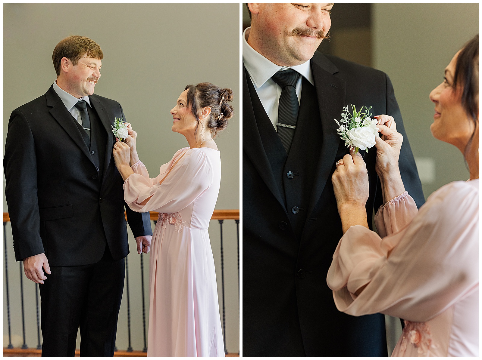 Miranda and Caleb’s kicked of their day at a charming countryside Airbnb cabin nestled in Winterset, IA. The cabin created an ideal ambiance for their preparations. I could sense the palpable excitement radiating between Miranda and Caleb as the morning unfolded.